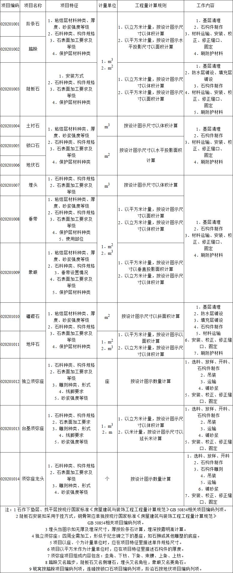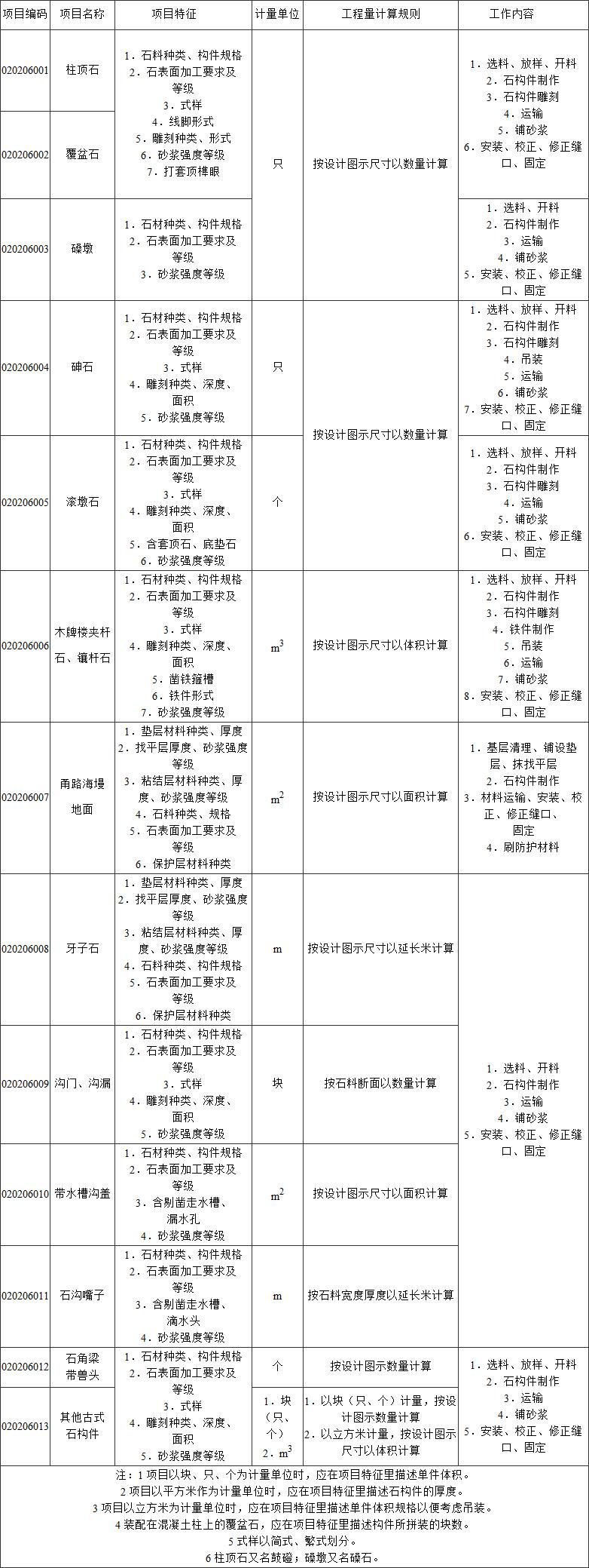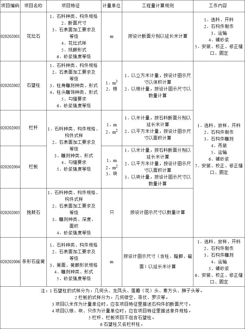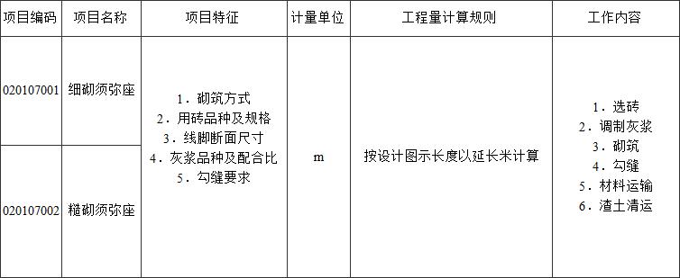 须弥座工程量清单项目设置、项目特征描述的内容、计量单位及工程量计算规则,应按表A.7的规定执行。