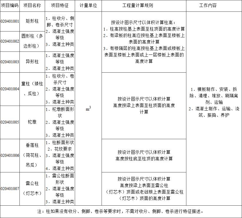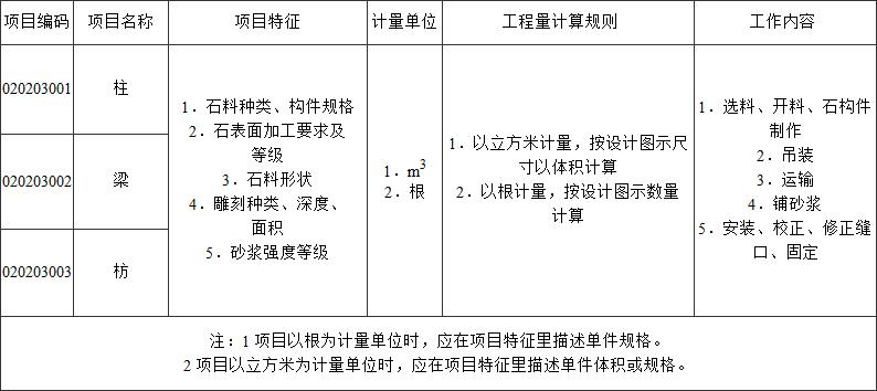 (1)项目特征描述的内容应按附录中的规定,结合拟建工程的实际,满足确定综合单价的需要。