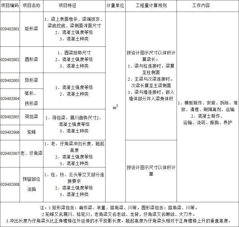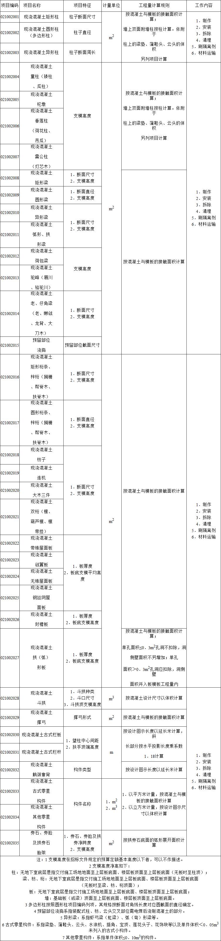 混凝土模板及支架工程量清单项目设置、项目特征描述的内容、计量单位及工程量计算规则,应按表K.2的规定执行。