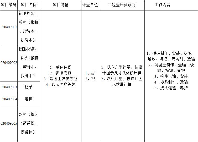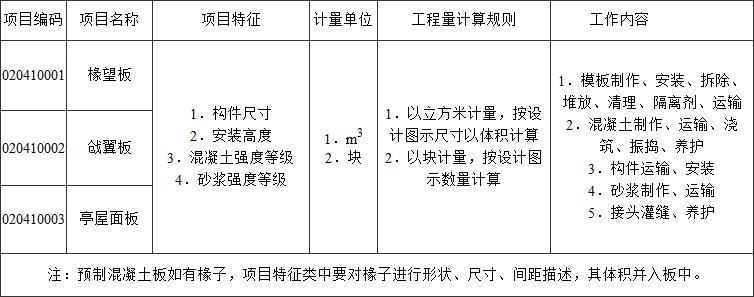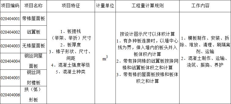 4.2.8 本规范中预制构件按现场制作编制项目,与《建设工程工程量清单计价规范》GB 50500-2008项目相比,工作内容中包括模板工程,模板的措施费用不再单列。若采用成品预制混凝土构件时,成品价(包括模板、钢筋、混凝土等所有费用)计入综合单价中,即:成品的出厂价格及运杂费等进入综合单价。