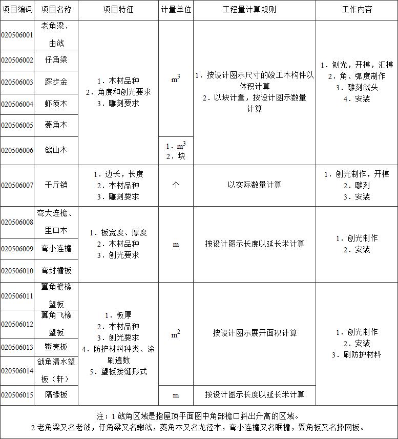 3.0.6 本条规定了仿古建筑工程与其他“工程量计算规范”在执行上的界线范围和划分,以便正确执行规范。