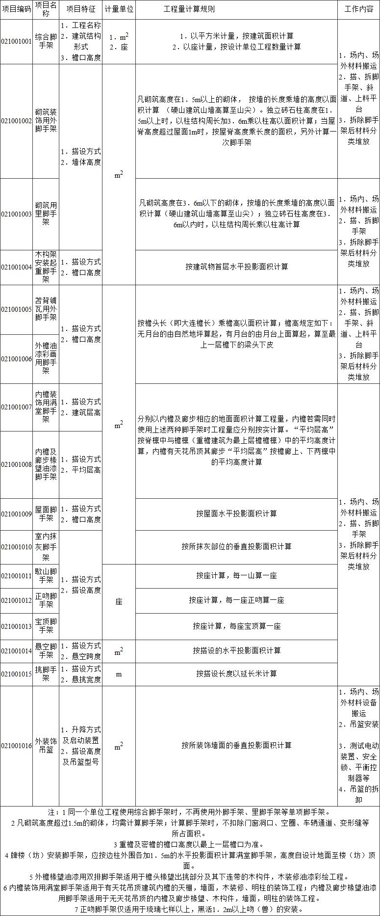 (2)本规范附录工作内容列出了主要施工内容,施工过程中必然发生的机械移动、材料运输等辅助内容虽然未列出,也应包括。