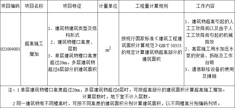 超高施工增加工程量清单项目设置、项目特征描述的内容、计量单位、工程量计算规则应按表K.4的规定执行。