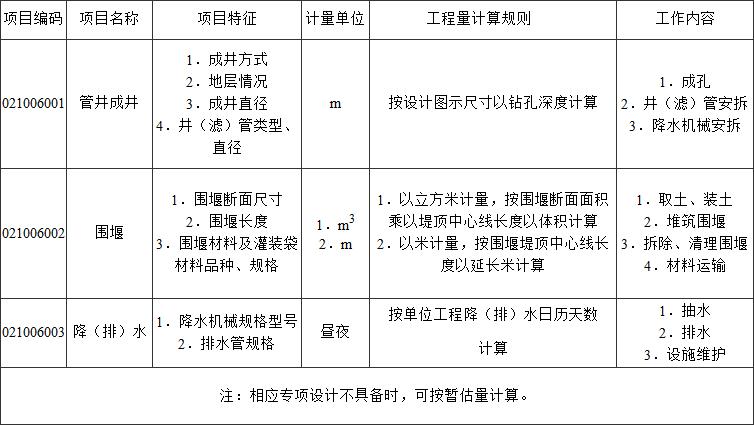 施工降水排水工程工程量清单项目设置、项目特征描述的内容、计量单位及工程量计算规则应按表K.6的规定执行。