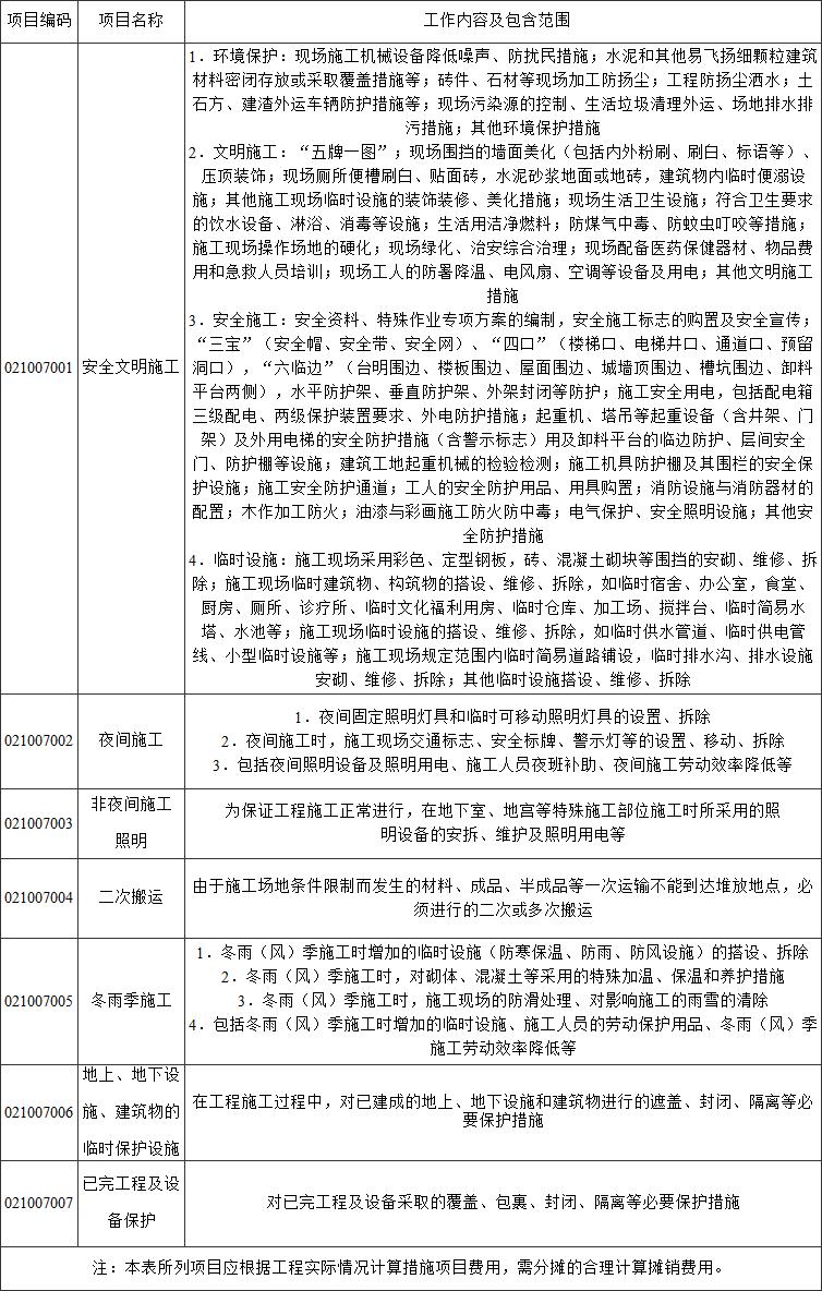 表K.7 安全文明施工及其他措施项目(编码:021007)