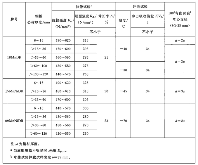 ——提高各牌号低温冲击功,由≥27J提高到≥34J,厚度>36mm~60mm的16MnDR冲击试验温度由-30℃降低为-40℃。