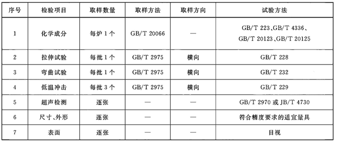 钢板的检验项目、取样数量、取样方法及试验方法应符合表3的规定。