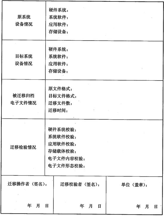 8.3.3 建设电子档案迁移时必须进行迁移登记,登记内容应按本规范附录G的要求填写。