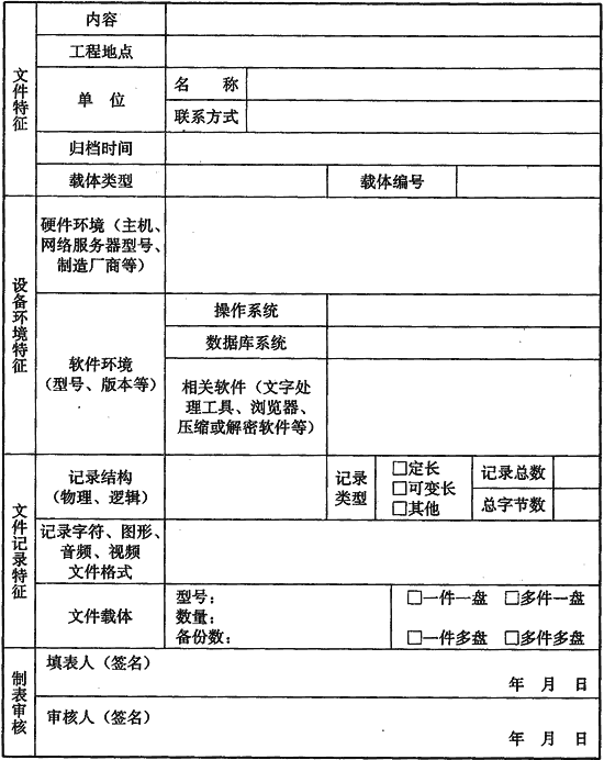 5.2.4 各类建设系统业务管理(或建设工程)电子文件管理登记表(见附录A、附录B)是建设电子文件归档与管理过程中的业务用表。在建设系统各专业业务部门,该表是建设系统业务管理电子文件管理登记表;在参与工程建设的各建设、设计、施工、监理、测量等单位,该表是建设工程电子文件管理登记表。