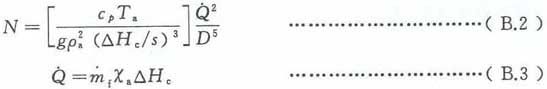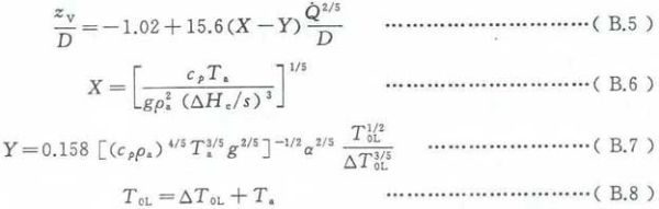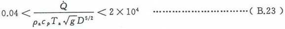 热释放速率参数和火源直径参数D应符合式(B.23)给出的不等式条件要求,该不等式的依据信息可参见Mccaffrey的研究成果(参见参考文献[30])。