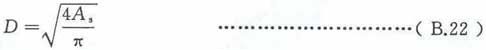 参数D的单位为m,是圆形火源的直径。此参数通常从设定火灾场景中获得。对于矩形的火源,取具有同等面积As(单位为m2)的圆形火源的直径作为其等效直径D,通过式(B.22)计算得到。