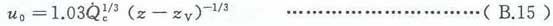假设火源为B.8.1所述的油盘火。由于热释放速率已知,所以虚点源的位置zV(单位为m)可由式(B.9)计算得到: