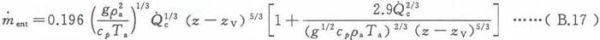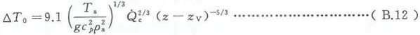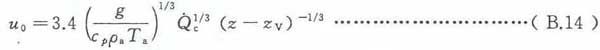 为了保持公式满足上述适用范围,应限制火源周围环境的温度梯度。因此,火源基部以上高度z处的环境温度(Ta)z与火焰基部附近的环境温度(Ta)z=0应符合式(B.24)给出的不等式条件要求(参见参考文献[37])。