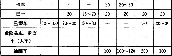 可通行危险化学品等机动车 | L>1500 | 500<L≤1500 | L≤500 | — |