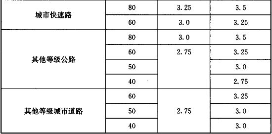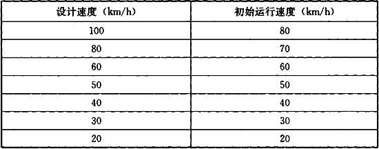 设计速度(km/h) | 100 | 80 | 60 | 60 | 50 | 40 | 50 | 40 | 30 | 40 | 30 | 20 |