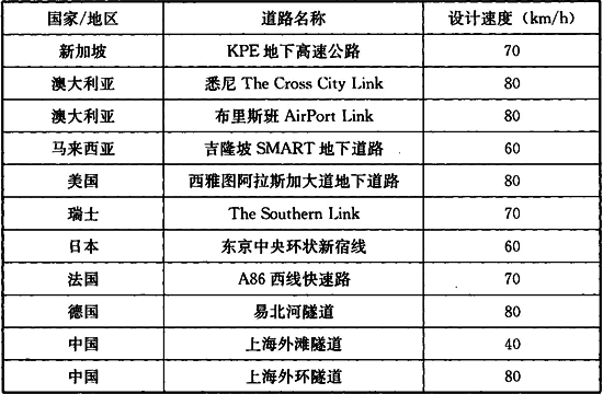 注:除短距离地下道路外,设计速度不应大于80km/h。