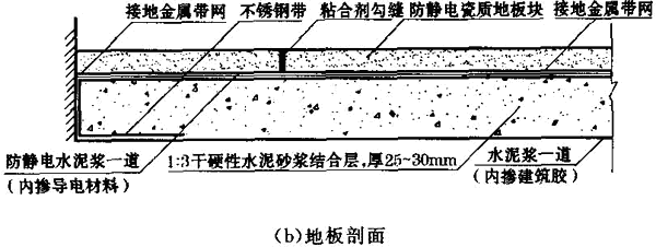 2 地板表面对接地母线的电阻值应达到5×104~1×109Ω。