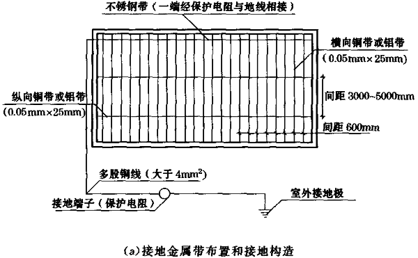 3.3.3 本规程采用25mm宽的铜箔或铝箔形成网格地极,以便有效地防止静电积累。