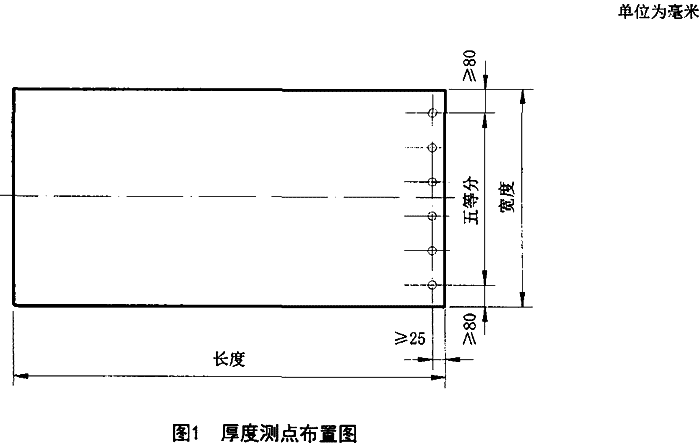 在板材的任一端头的宽度方向上等距离布置六个测点,且测点距板材的端头不小于25mm,距板材的棱边不小于80mm,见图1。