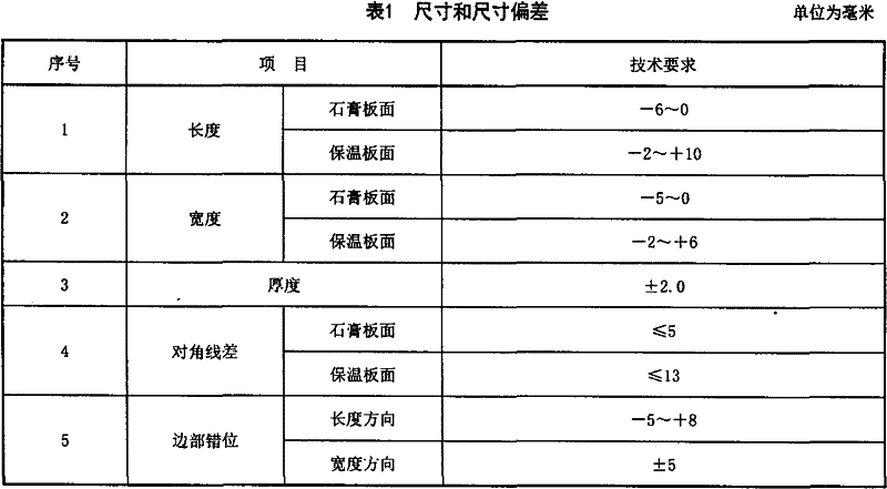 复合保温石膏板的尺寸和尺寸偏差应符合表1的规定。