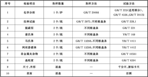 每批盘条的检验项目、取样数量、取样方法及试验方法应符合表4的规定。