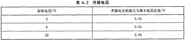 电池开路电压的最大与最小电压差值不应大于表A.2的规定的。