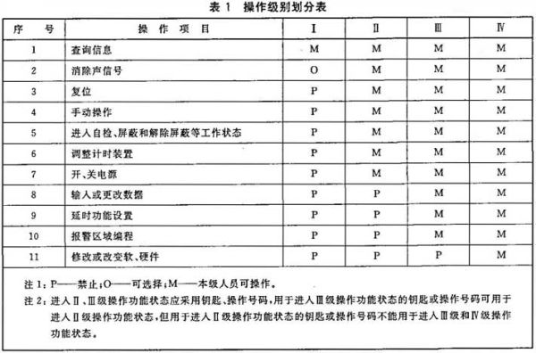 消防联动控制系统各类设备的操作功能应符合表1规定的操作级别要求。