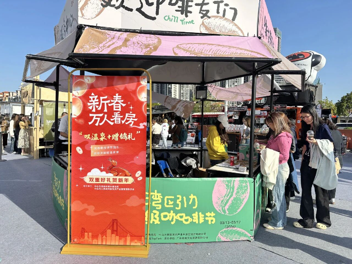 作为本届咖啡节的亮点配套活动,“伴随式”房展突破传统展陈模式,依托咖啡节超高人气实现精准引流。活动现场,大屏幕轮播的中山城市宣传片与优质房地产项目影像交相辉映,生动展现湾区枢纽的城市魅力与宜居画卷。市住房城乡建设局携全市24个精品房地产项目重磅亮相,特别推出“购房券大放送”活动,面向咖啡节到场市民发放总价值3万元的购房专项券,单券面额最高达30000元,为消费者带来实实在在的置业福利。