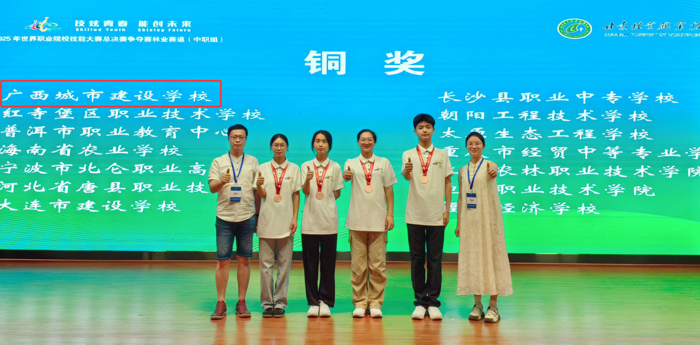 近日,2025 年世界职业院校技能大赛总决赛落下帷幕,广西城市建设学校学子在赛场上奋勇拼搏,勇夺土木建筑施工赛道(中职组)金奖与林业赛道(中职组)铜奖。