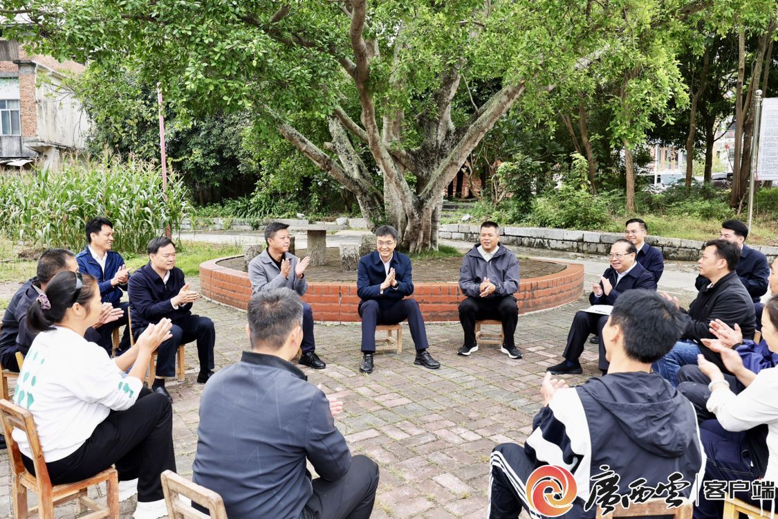 10月27日,自治区党委书记、自治区人大常委会主任陈刚来到宾阳县古辣镇马界村,与基层党员、群众代表在村头大榕树下,结合当地实际和乡亲们关心关注的问题,深入浅出地宣讲党的二十届四中全会精神。广西云-广西日报记者 黄克 摄