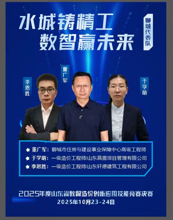 10 月 23至24 日,由山东省住房和城乡建设厅、省总工会举办的 “山东省数智造价创新应用技能竞赛” 决赛在德州市圆满落幕。本次竞赛汇聚了全省 50 支城市、企业及行业社会组织代表队,150 名选手同台竞技。聊城市住建局派出 “聊城市代表队”、“山东昌盛代表队” 和 “聊城鼎志代表队” 三支代表队,共 9 名优秀选手参赛。
