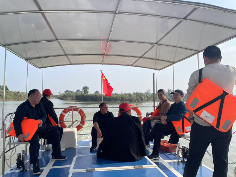 活动的第三站大家前往南洞庭登上游船。秋日暖阳下,湖面波光粼粼,两岸风光如画。老干部们泛舟湖上游览凌云塔、七星洲、大湖面、灯塔洲等景色,清风拂面,欢声笑语在碧波间荡漾。老同志对此感慨万千,他们亲眼见证了这片土地“退耕还湖”的生态成效。