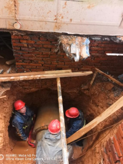 爆管发生后,市自来水公司紧急调动专业抢修人员,并与电力、社区等部门密切配合,全力投入抢修工作。由于爆管位置复杂,施工环境恶劣,作业地点位于电力局三座变电厢下方,开挖空间极为有限,维修队伍只得采用人工开挖方式进行抢修。为确保安全,维修人员除与电力部门密切配合外,还需使用吊车稳固变压器,一方面防止设备和人员发生意外,另一方面减少地面承压以防止发生大面积塌方。