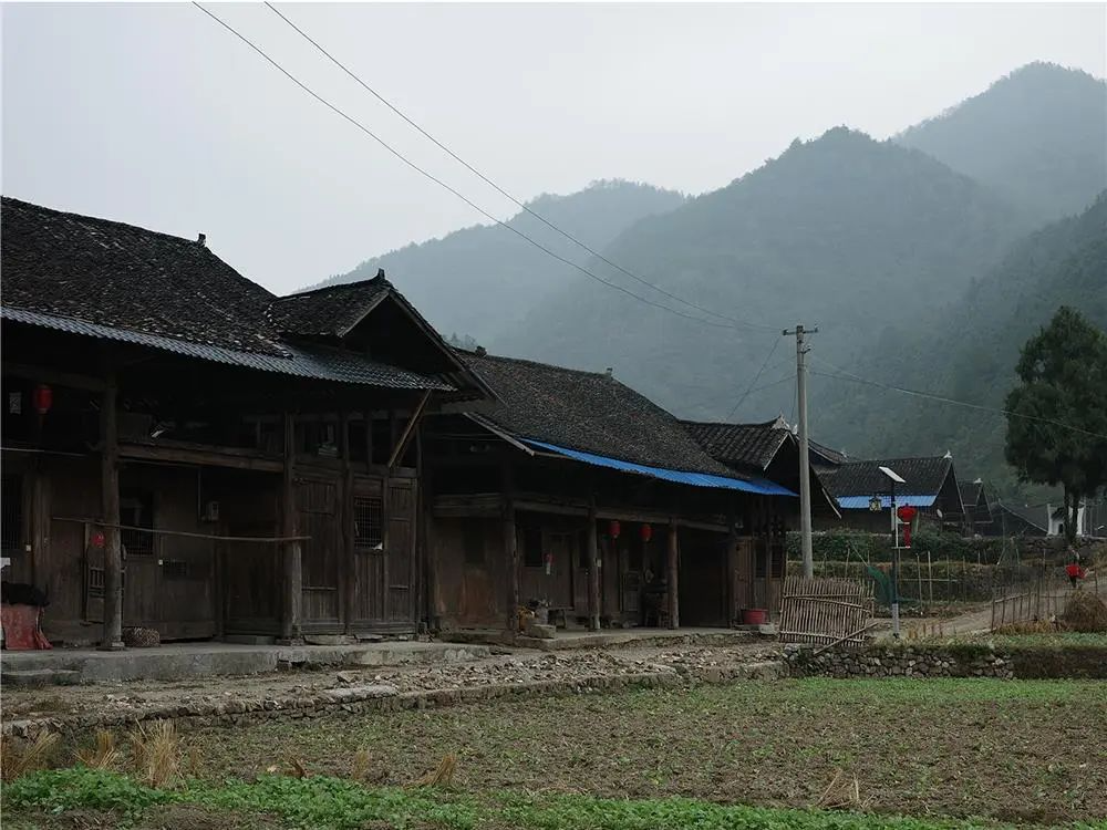 民居多因地制宜,依山而建,房屋之间错落有致;民居平面多为“凹”“∟”形,面阔三、五间不等,左右设偏房及杂屋,穿斗式全木结构;二层、盖小青瓦和杉树皮,部分房屋设檐廊;基础采用碎石垒砌而成。