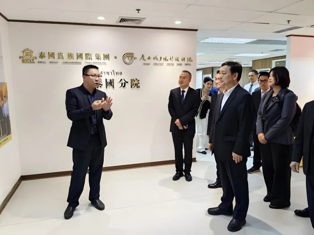 杨绿峰一行到广西城乡规划设计院泰国分院调研,听取泰国分院工作汇报,重点关注中泰产业联盟数智化公共服务平台等项目的推进情况,为进一步拓展合作网络、推动项目落地奠定基础。